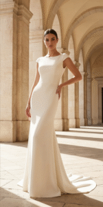 With its balance of softness and structure, crepe is a favorite among designers seeking sleek, contemporary silhouettes. Its matte finish and graceful drape create garments that feel luxurious yet understated — perfect for today’s modern bride and refined special-occasion wear.
