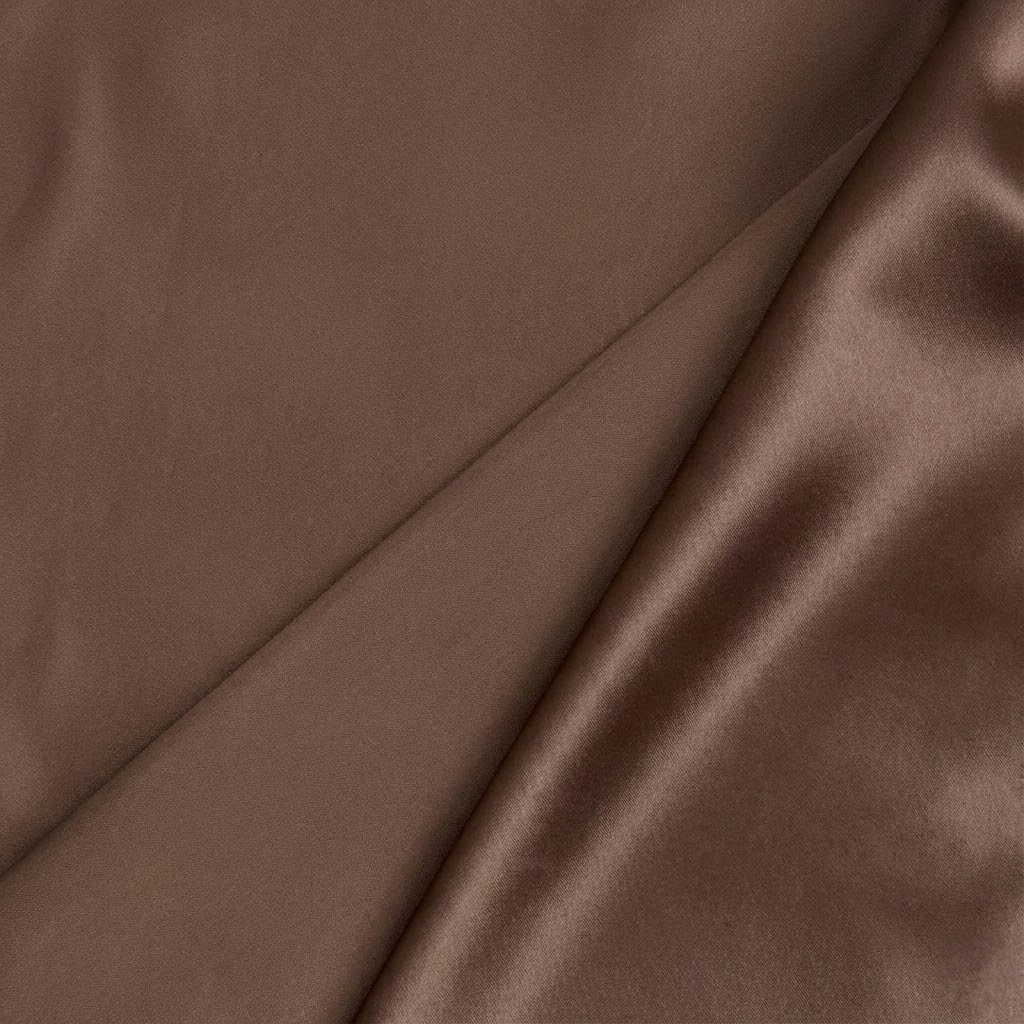 Matte crepe on one side and smooth satin on the other for versatile construction.